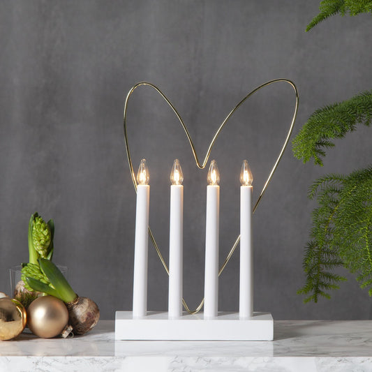 Star Trading - Świecznik adwentowy błyszczące serce - biały - 37 cm
