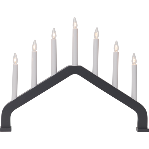 Grafit grå träljusstake i stilren och enkel form med sju ljus för inomhusbruk.